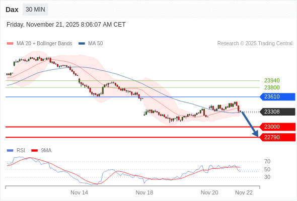 交易策略: 在 23610 之下,看跌,目标价位为 23000 ,然后为 22790 。